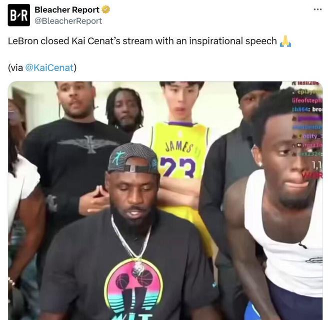 因臀部紧张缺席首训后,詹姆斯做客了美国网红Kai Cenat的直播间,并且公开发表演讲回击质疑者。